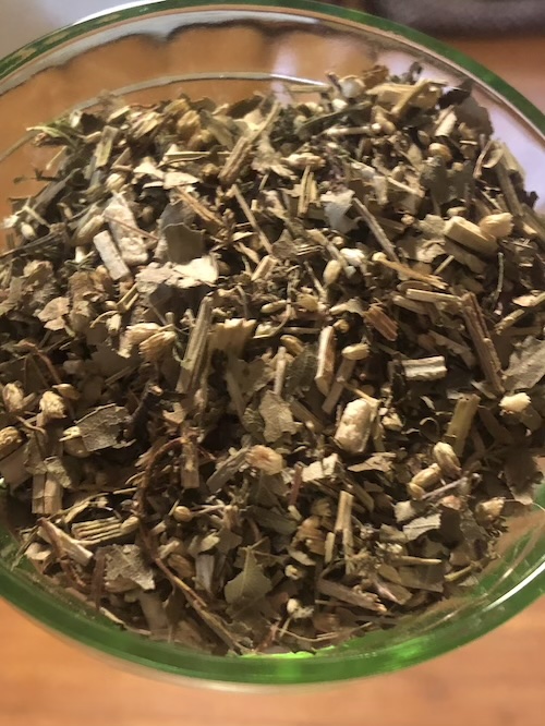 Devil Claws, Meadow Sweet (Filipendula ulmaria), Birch leave, Sweet Annie, Yarrow flowers.