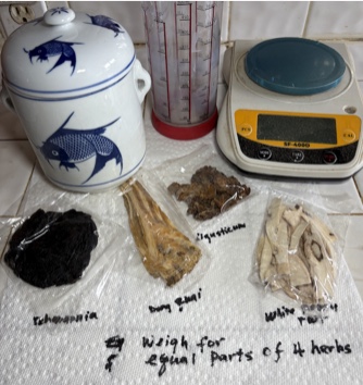 Make sure the four substances are equal parts in weight. Traditionally, according to Guangdong Pearl River area, people tend to combine herbs with regular lean protein like lean pork, chicken, eggs, mock sausage , or shiitake mushrooms (inspired from Teresa M. Chen “ A Tradition of Soup Flavors from China’s Pearl River Delta).